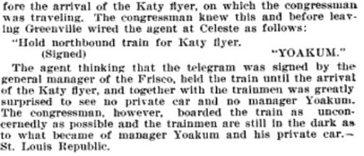 joint stations) in Celeste, but it did occur, as noted below. Below: Perhaps when the joint passenger station was being planned, the oldtimers in Celeste recalled this story in Railway Age from December, 1896. ![]() ![]() |