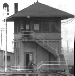 took this photo from the rear platform of his business car, his camera prompted by the sudden appearance of Tower 78. Barriger's