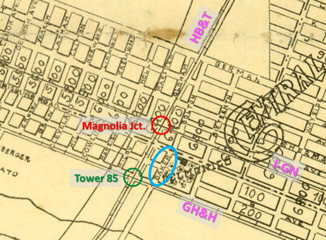 Tower 85: Crossing of the Houston Belt & Terminal Railway and the Galveston, Houston & Henderson Railroad