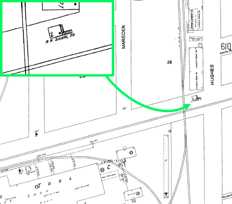 along the railroad and saw the tracks and the crossing, and a guardhouse for