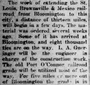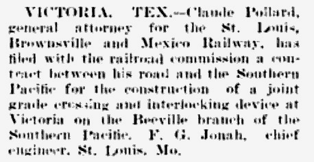 the next railroad to reach Victoria. It was the St. Louis, Brownsville