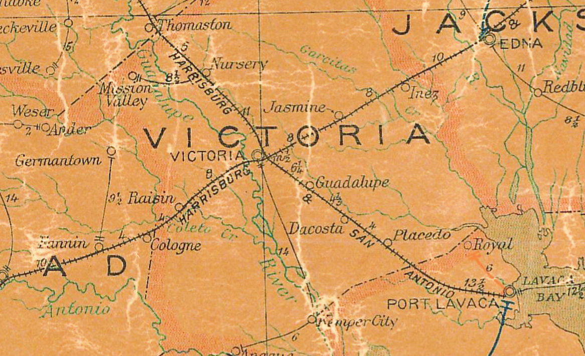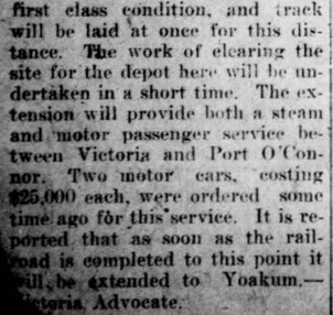 | Long before Yoakum entered the picture, the idea of a Victoria - Port O'Connor rail line had been
