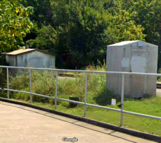 tracks is automatic. Right: In 2019, two "walk-in" cabinets still sat at McCune (named for W. H. McCune, Katy's "Road Foreman for Engines") in this Google Street View from near the Armstrong Ave. grade crossing. The west switch for the Lamar cutoff was located here, where Harry Brown described the challenge of crossing Armstrong Ave. fast enough to maintain speed on slick rails but slow enough to allow time for the brakemen to manage the crossover switches. |