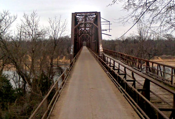 bridges that served Denison: (left) the KO&G bridge at Carpenter's Bluff,