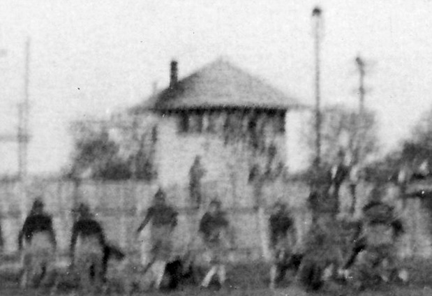 assistance.) Right: At full resolution, the blurry image may show spectators standing on a staircase on the south side of the tower. Although football is being played, the field is identified on Sanborn Fire Insurance maps of the era as a "Base Ball Park" including a grandstand (see map image below.) A century later, the site remains a baseball facility, but staff at the Whitewright Public Library confirm that it was also used for football until a new stadium was built at Whitewright High School in the 1980s. |