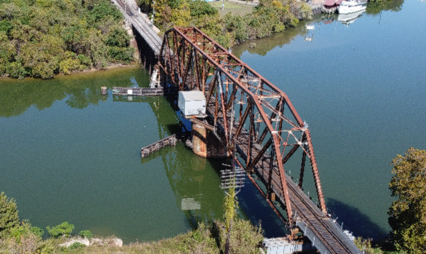 bridges over Buffalo Bayou adjacent to the Turning Basin. The GL&H bridge is the