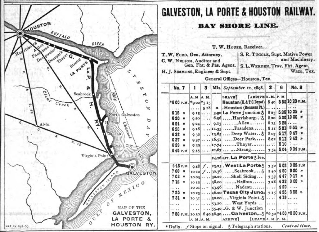 a channel to the Gulf. The TTC opened tracks from Houston to Clinton in late 1876,