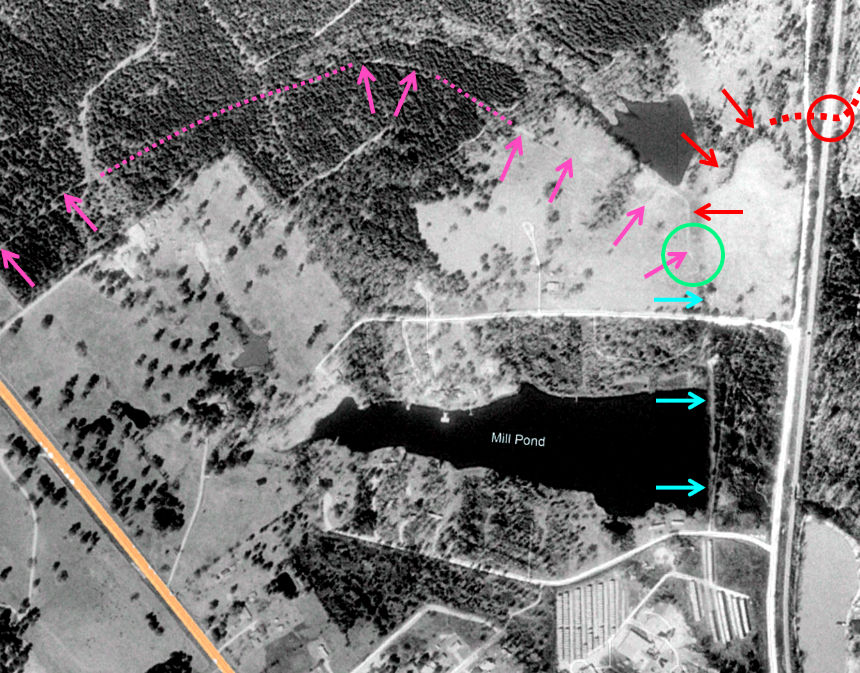 switch (green circle) between the Mill Pond and a smaller pond farther north. Unfortunately,
