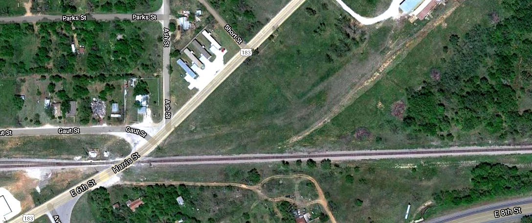 east side of town, adjacent to what is now the U.S. 183 (Harris St.) grade