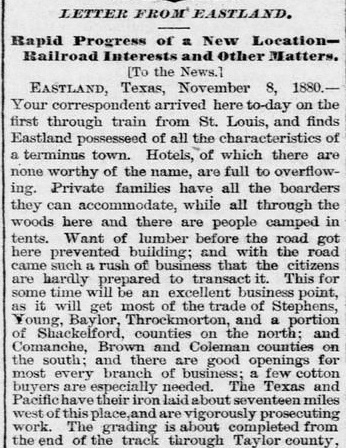 Eastland county". Never mind that Santa Fe track construction had yet to commence,