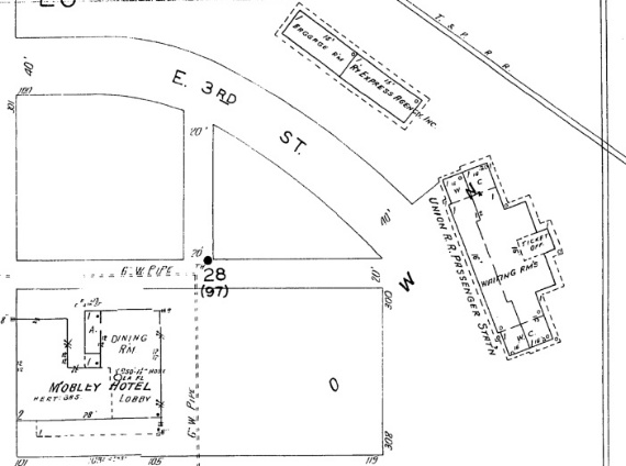 Passenger Station was on the southwest side of the crossing as was the Mobley Hotel. In 1919, a young,