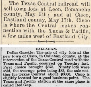 Callahan County to the west. The T&P was committed to building across Texas from Marshall to El Paso
