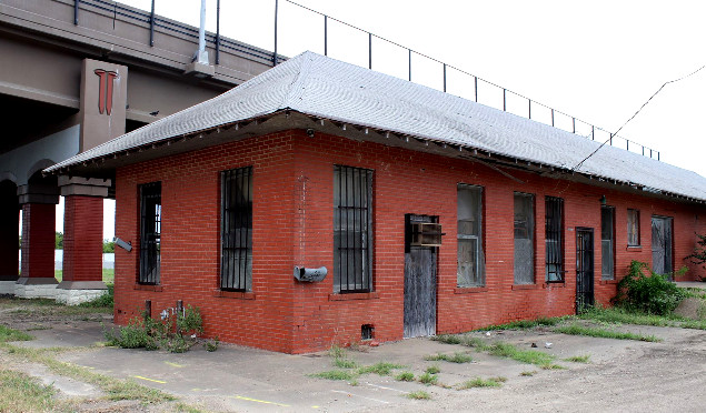 views of the abandoned TM freight depot in Terrell show that it now sits in the shadows of