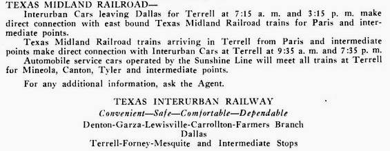 the Texas Midland offered for Interurban passengers at Terrell. The ad