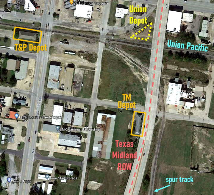 where it crossed the Texas & Pacific (T&P) tracks visible in the