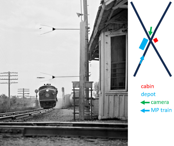 cabin. The UP mainline is in the foreground, with north to the right, crossing