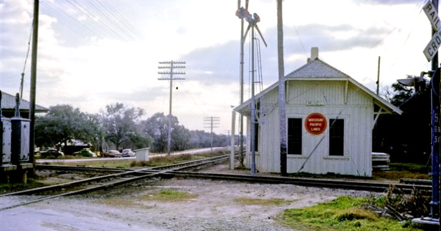 SP #6607 crosses the diamond adjacent to the MP depot. The depot sat in the west