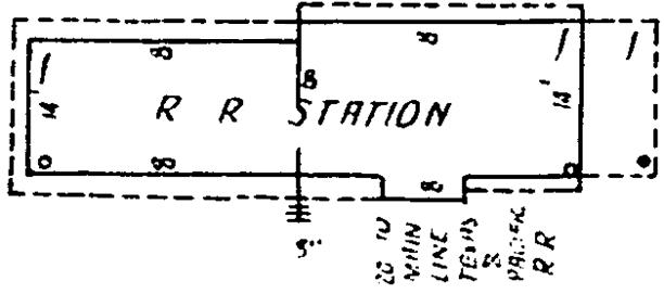 as a "R R Station" with an interior north / south width of 14 ft. The