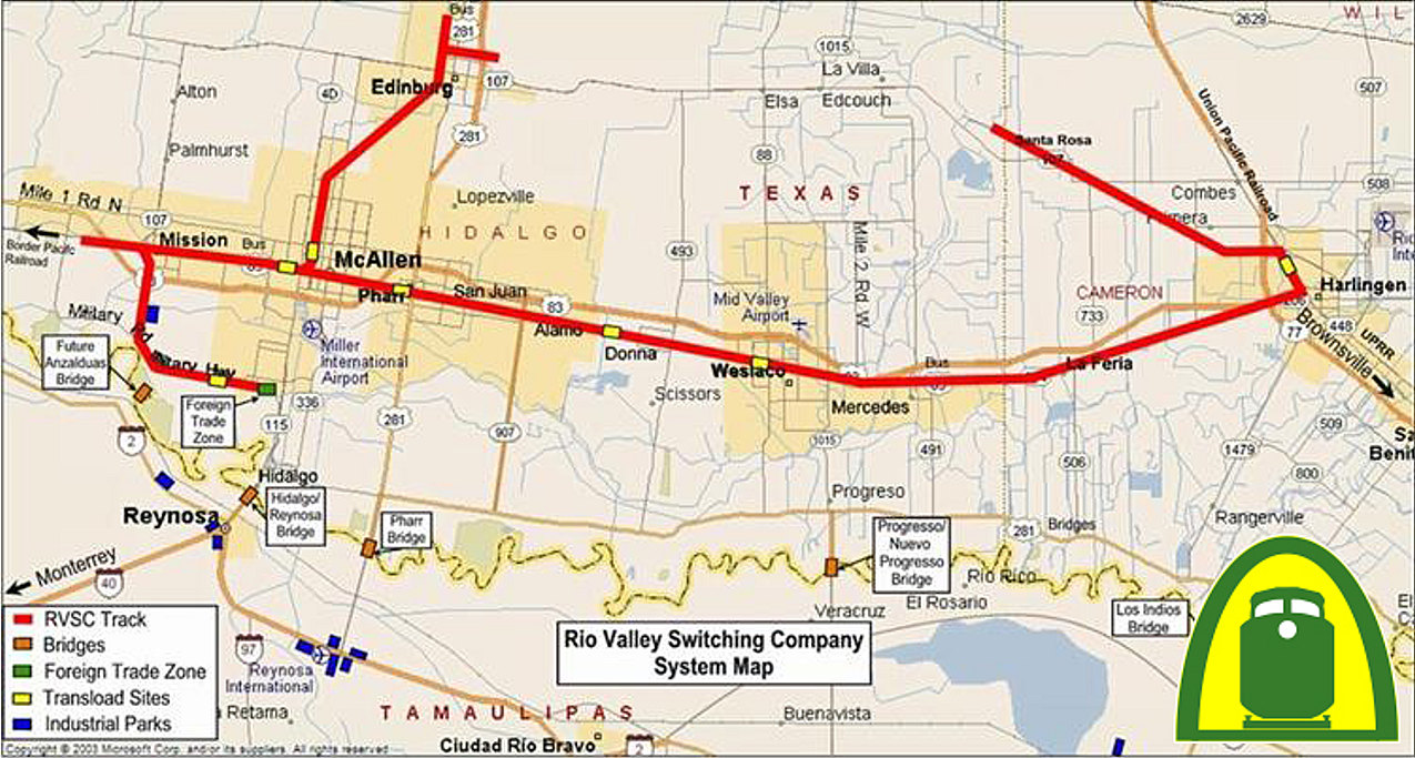 / SP merger in 1996. "SBRG" is the San Benito and Rio Grande Valley Railway