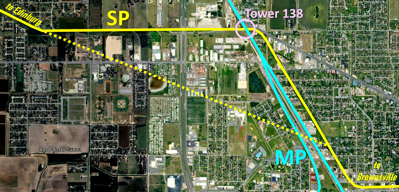 Brownsville by SP on its own track east from Tower 138, a connector was added in