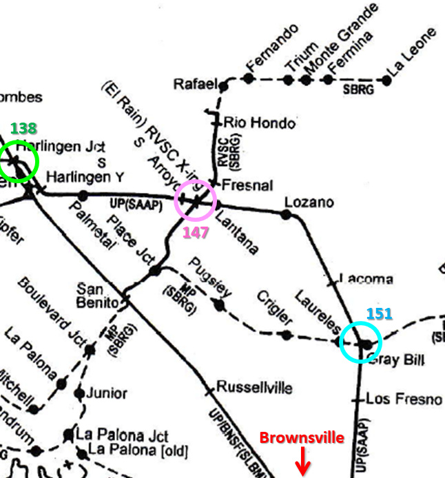 bearing toward Brownsville. SP's Harlingen yard was also eventually placed along