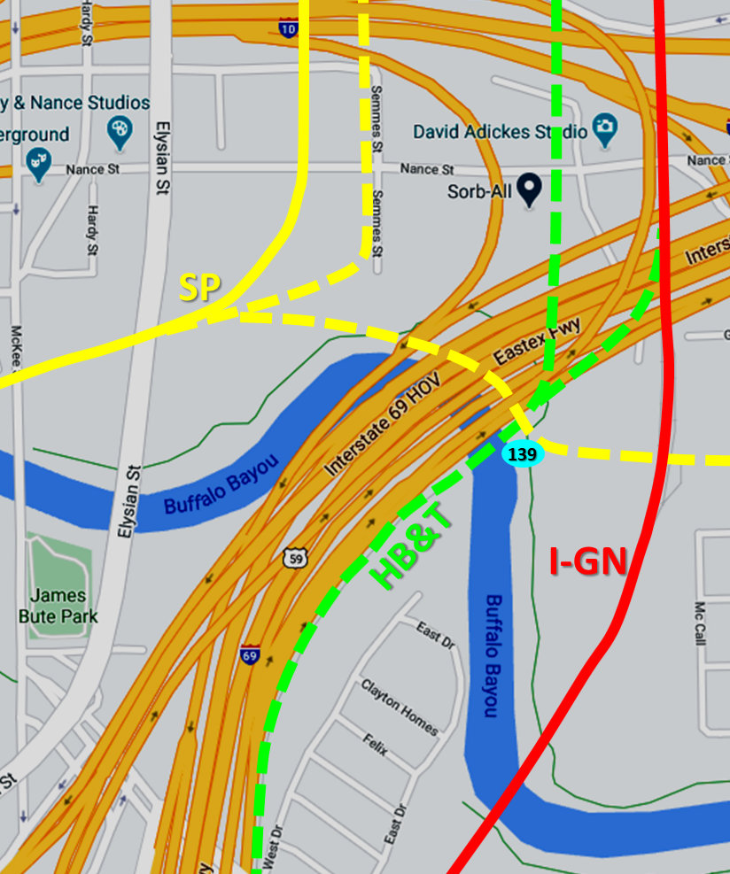 from Clinton to downtown Houston. Close to downtown, the GH&SA crossed