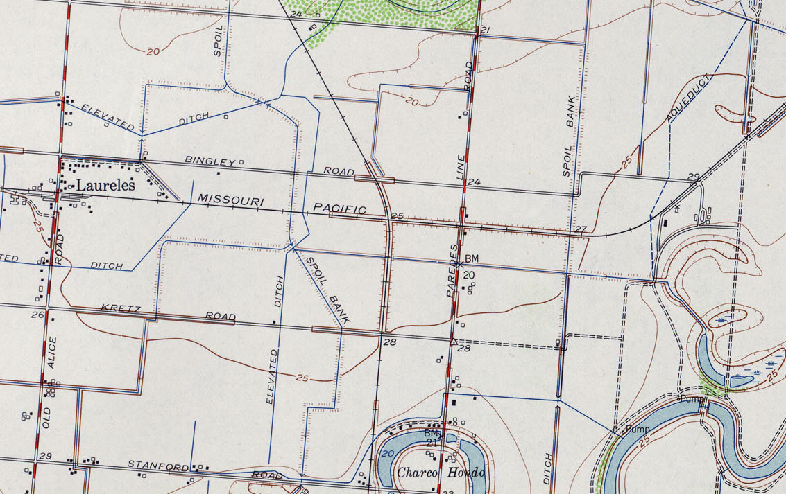 San Benito (right) to Rio Hondo (left). The white post is the only evidence of a