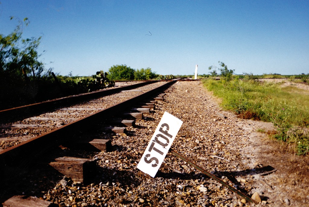 the MP toward Rio Hondo. It shows MP's homemade stop sign with the SP line