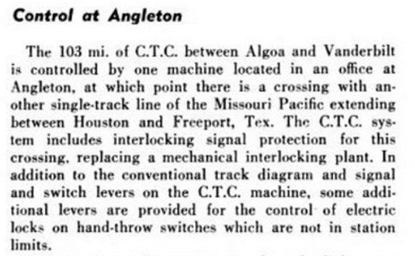 Centralized Traffic Control (CTC) machine "located in an office at Angleton...",