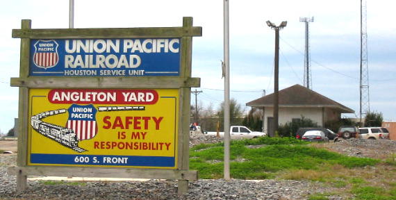 southwest connector in the distance are being pulled by a UP train into Angleton