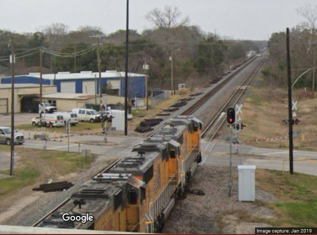 from 2018 shows the remaining tracks near the Tower 154 crossing, now Angleton