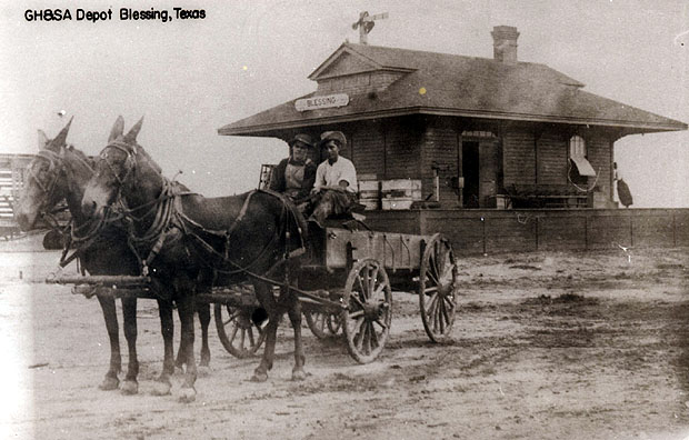 Blessing page at usgenwebsites.org show the MP and SP depots at Blessing.
