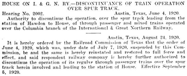 was abandoned in stages by MP: south of Anchor in 1956, south of Rosharon in