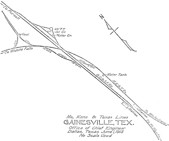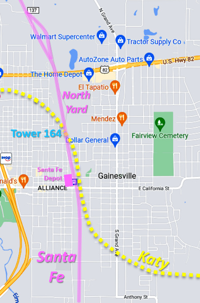 Katy's route through Gainesville was generally east / west, the tracks through