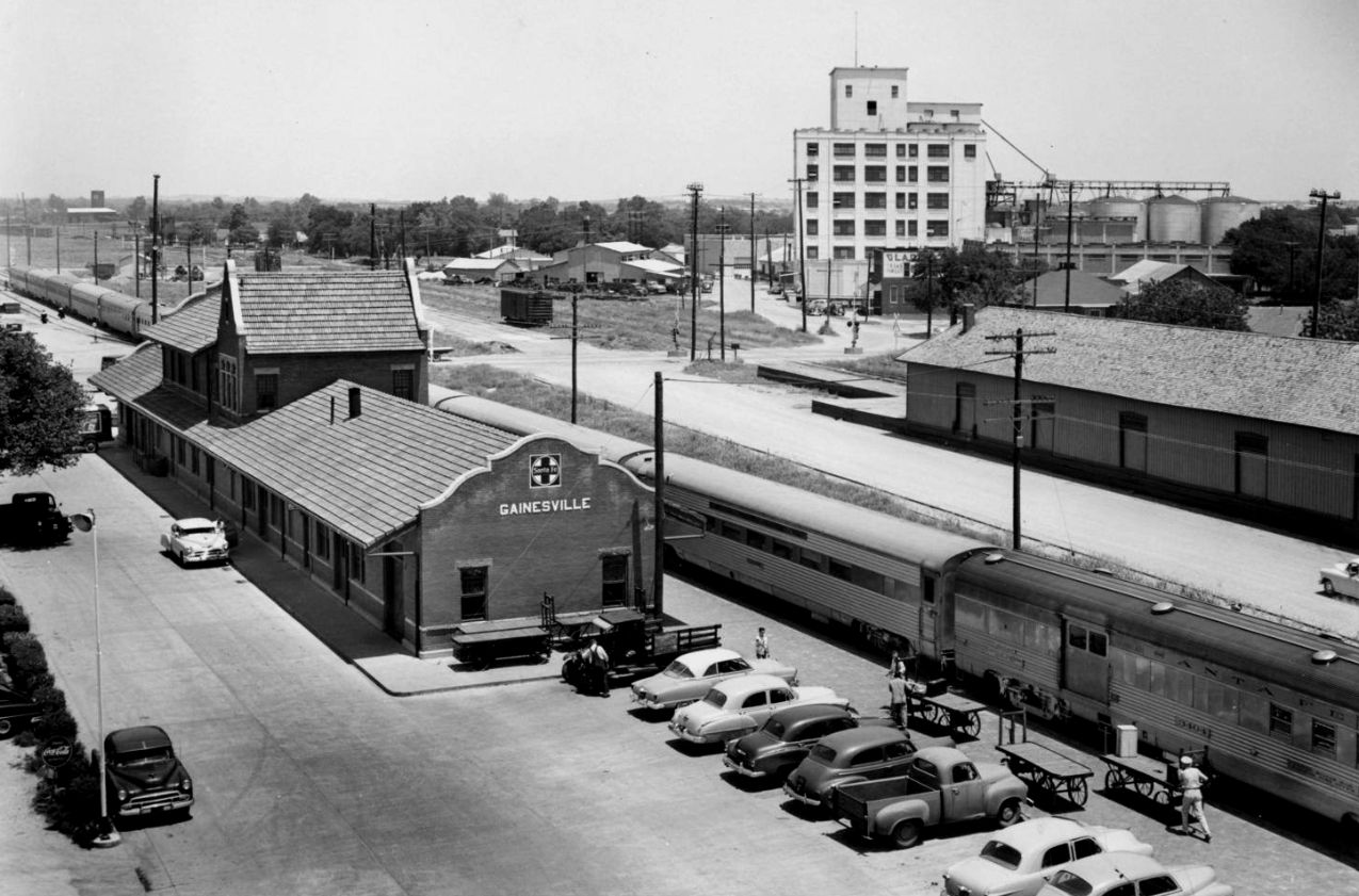 Above Left: Katy passenger depot at Gainesville, 1945 (H