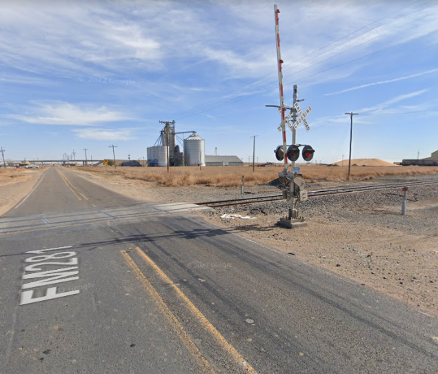 crossing signals along the highway in the distance mark BNSF's line. (Google