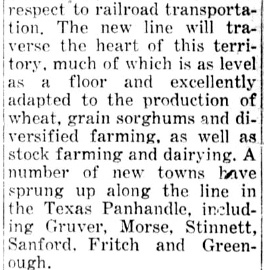 and Liberal. The tracks from Morse south to Stinnett were not mentioned; again,