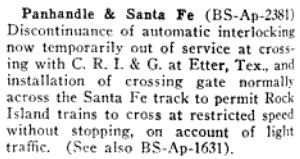 (The tracks west of Etter to Wilco were not mentioned, suggesting that the Wilco