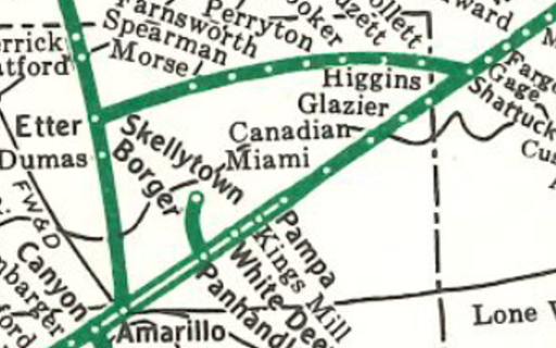 Fe branches off the main line to Borger (1926) and Skellytown (1927) were built