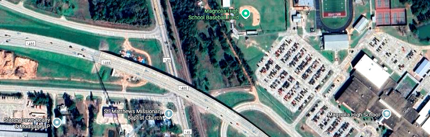 FM 1488 is a freeway that crosses over FM 149 and the former B-RI tracks.