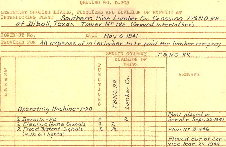 crossing of the HE&WT (now T&NO) at Diboll. According to a drawing obtained by Carl Codney from SP's Houston