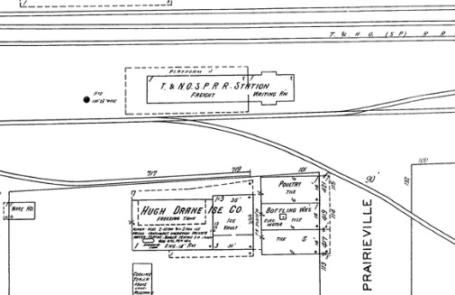 depot was at the intersection of N. Prairieville and W. Larkin. The T&NO depot