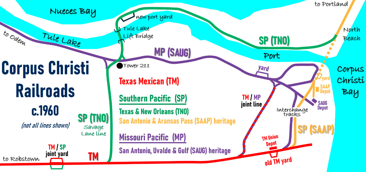 The Southern Pacific (SP) and Missouri Pacific main lines between Corpus