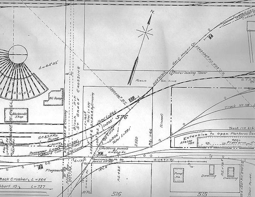 adopted by the other railroads since 36th Street was not nearby. Left, Second: This 1930 T&NO ETT presents the whistle codes that pertain to T&NO trains at Tower A under a title that begins "TOWER, 35th STREET..." T&NO associated Tower A with 35th St. and there was also a junction switch associated with 34th St. But neither of these streets was near the tower nor intersected Mechanic St., faring no better than 36th St. as a naming rationale. Yet, this must be Tower A as there were no other manned towers in the area (to hear the whistle codes!) and the codes for T&NO trains to reach their main track (three long blasts) or the Post Office track (two short blasts) is the same as for the "Thirty-Sixth Street Interlocker". Left, Third: This 1951 T&NO ETT lists the same whistle codes, but uses the confusing title "TOWER 36, 35th STREET...". This appears to be an attempt to combine the 36th St. reference used by Santa Fe with the 35th St. reference that T&NO had been using. Unfortunately, it conveys the erroneous message of referring to "Tower 36" located in Bryan. Left, Fourth: Elsewhere in the 1951 ETT, T&NO associates "35th St. Tower" with the mileposts for the 34th St. junction and the 35th St. crossings. Left, Bottom: In 1939, Santa Fe referenced the Tower A junction as "Ave. A Jct., 36th STREET" apparently confusing Ave. A with Tower A. Mechanic St. was platted as Avenue C, not Avenue A, which was two blocks from the tower, more than 200 yards away at the closest point. Another junction 0.1 miles closer to Union Station was referenced as "WHARF CO. CROSSING, 35th STREET Jct." Elsewhere in the 1939 ETT, Santa Fe confirms that these two crossings are "protected by interlocking plant", but it does not name the tower. By the end of the 1990s, all of these railroads had been consolidated into two large systems: Union Pacific (GH&H and T&NO) and Burlington Northern Santa Fe (GC&SF and B-RI.) |