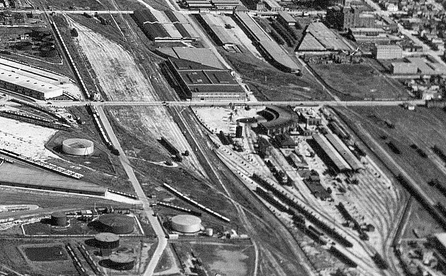 snippet taken from the larger image, the Santa Fe roundhouse is at the top edge,