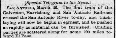 3, 1877 has GH&SA's train arriving San Antonio at 4:00 pm after