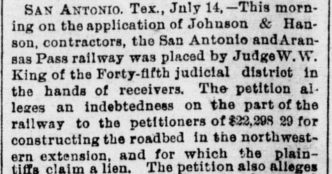 Harrisburg & San Antonio (GH&SA) Railway. By this time, GH&SA no longer