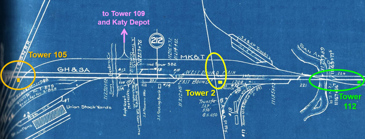 Tower 2, Tower 105 and Tower 112. Tower 2 controlled the GH&SA crossing of the