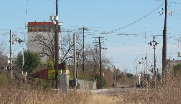 from the east. The grade crossing signals are for Hirsch Rd. Above Right: The