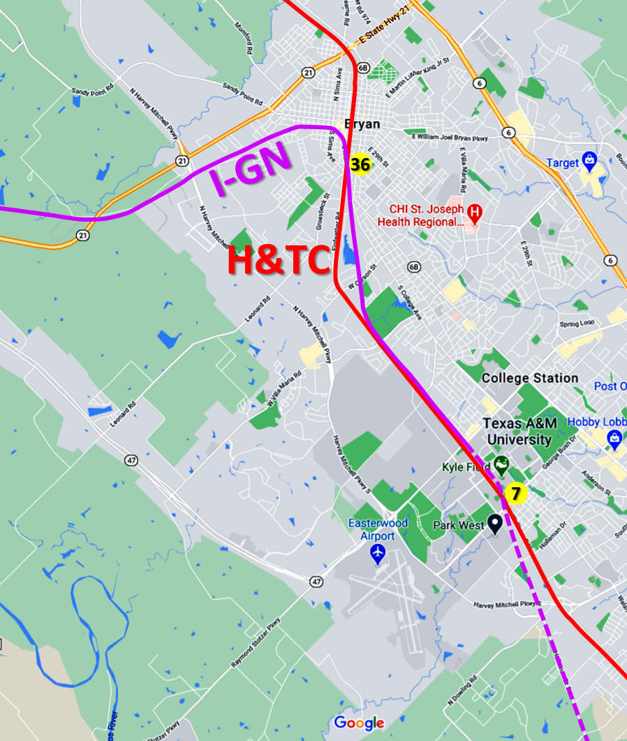 went northwest out of Bryan and continued to Hearne while the I-GN swung